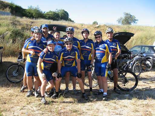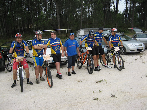 Hoje trago-vos a nossa aventura por terras de Lemede e tudo começou por volta das 7h30m quando o despertador tocou , bicicleta para cima do carro e lá fui eu apanhar o Varanda que me esperava e lá seguimos nós em direção a minha casa pois tinha-me esquecido do penso para o nariz e como ando constipado optei por ir a casa , quando vamos a sair de minha casa o Varanda dá por falta de 60€ que devia ter no bolso , lá voltamos para casa dele á procura do dito dinheiro que nunca apareceu , escusado será disser que chegamos atrasados ao ponto de encontro onde estavam o Tiago e o P. Simões a tomar o pequeno almoço , bebemos um cafezinho e o Bola sem aparecer ligo-lhe ele atende a disser adormeci (é caso para disser novidades só no Continente) lá seguimos rumo a Lemede juntando-se a nós o Bola e o Pedro Repas (que representou os Bikesurfers pela 1ªvez) , antes da partida lá andamos nós na rotina (cumprimentar Tremoceiros , Roda Pedaleira , Andorinha , Bike4nic8 , Gatões , etc..) .