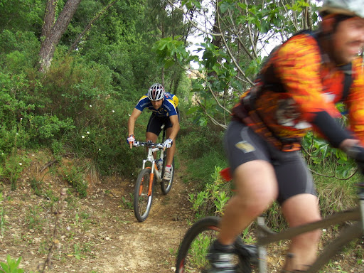 Arrancamos a bom ritmo mas , eis que chegamos a uma parte em que quase toda a gente se engana pois não havia fitas ao que parece um caçador andava a tirá las e foi apanhado em flagrante , eu enganei-me mas consegui corrigir a tempo segui caminho e eis que apanho o Tiago numa vinha parado a ouvir um velho e uma velha a ralhar com ele que não podia por lá passar , como opção atalhei caminho para não passar na referida vinha , entretanto chega o Tiago ao pé de mim dissendo que tinha tido um furo e lá seguimos eu ele um colega de Gatões e mais um camarada , meto-me na conversa com o Gatoeiro e nunca mais vi o Tiago parece que furou outra vez , lá segui até acabar a 1ª volta , quando ia a meio da segunda sou informado por um rapaz que estava no corte de estrada que a prova tinha sido cancelada , entretanto segui caminho na mesma com o colega de Gatões acabando a prova no campo dos Sombras Negras com 36klm e 2h20m ...